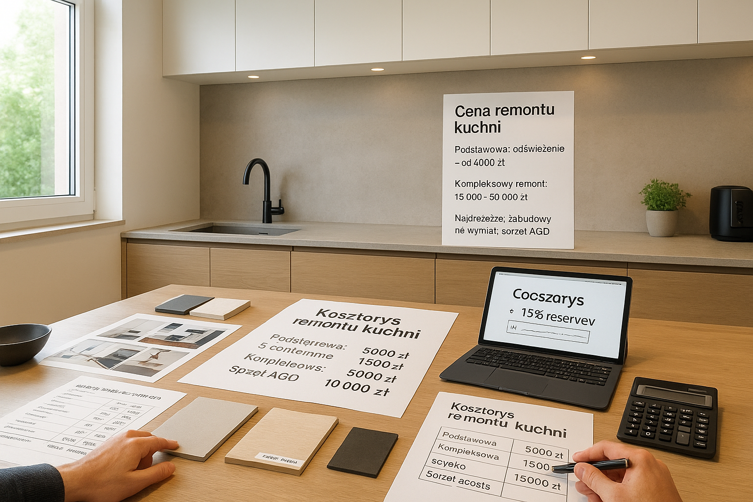 Koszt remontu kuchni zależy od zakresu prac i użytych materiałów. Podstawowe odświeżenie (malowanie, wymiana mebli) kosztuje od 5000 zł, natomiast kompleksowy remont z nowymi instalacjami to wydatek rzędu 15 000–50 000 zł. Najdroższe są zabudowy na wymiar i wysokiej klasy sprzęt AGD
