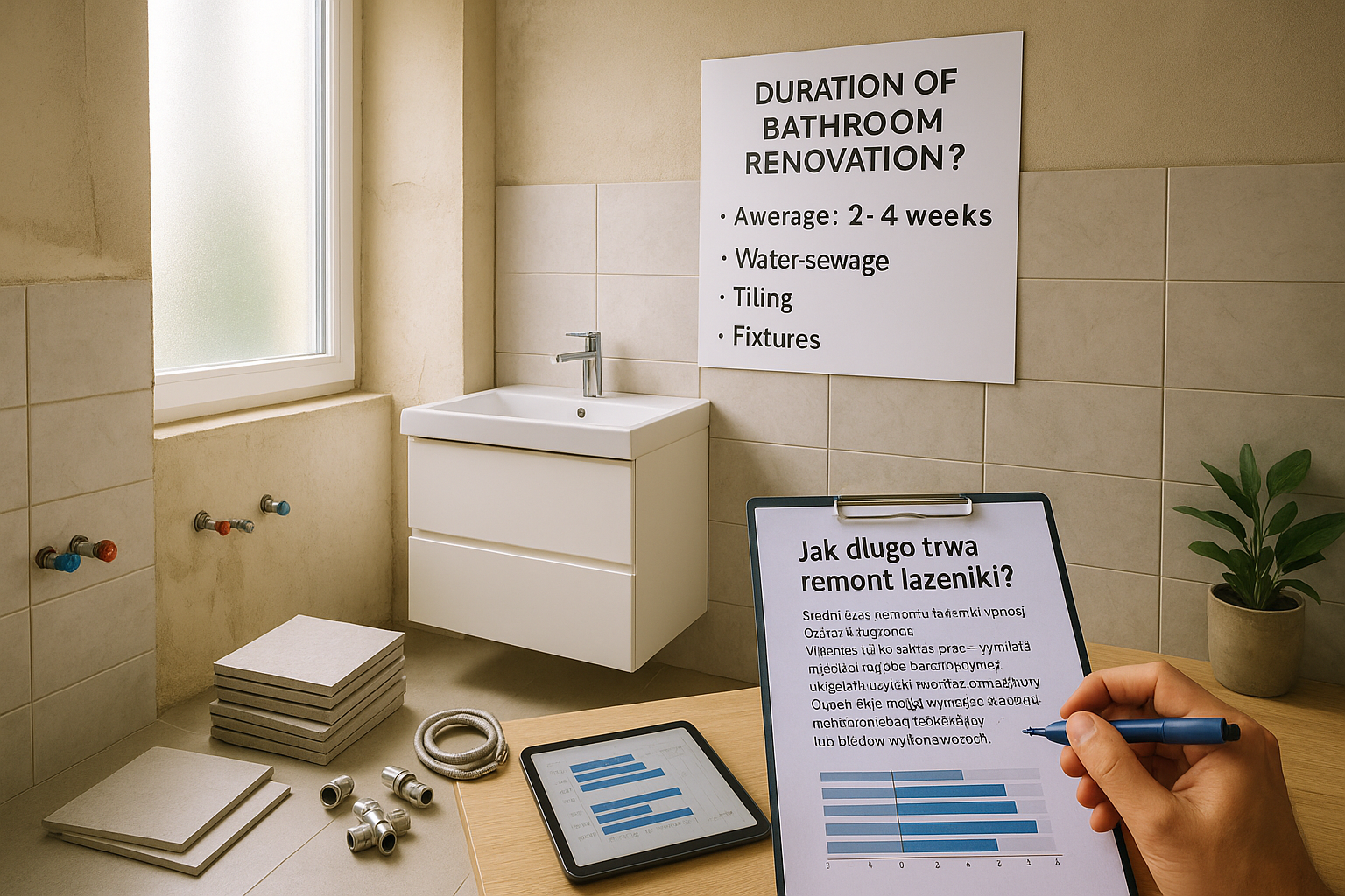 Średni czas remontu łazienki wynosi od 2 do 4 tygodni. Wpływa na to zakres prac – wymiana instalacji wodno-kanalizacyjnej, układanie płytek, montaż armatury. Opóźnienia mogą wynikać z niedostępności materiałów lub błędów wykonawczych. Planowanie i dobra organizacja pozwalają uniknąć długich przestojów.