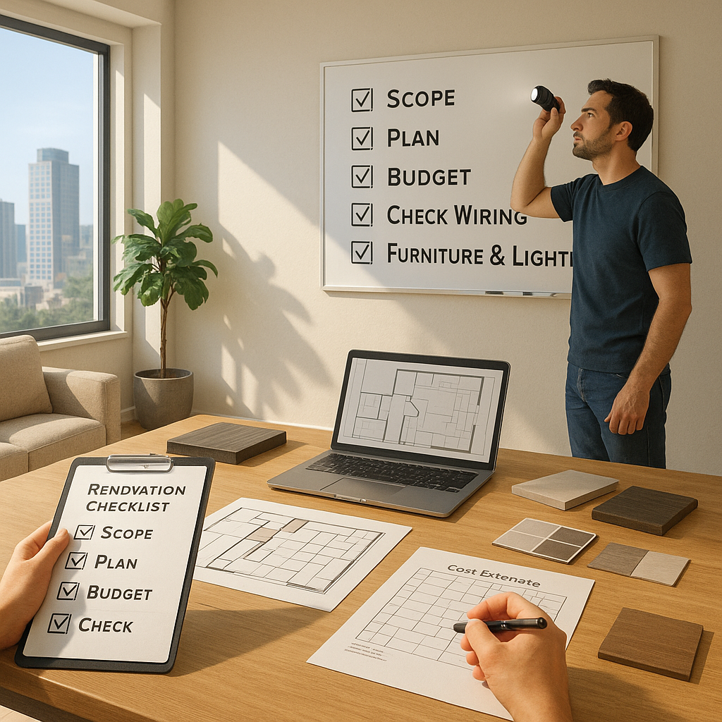 Najpierw określ zakres prac – czy chodzi o odświeżenie ścian, wymianę podłogi czy generalny remont. Następnie przygotuj plan działania i kosztorys. Sprawdź stan instalacji elektrycznej oraz jakość ścian i sufitu. Warto też zastanowić się nad funkcjonalnym rozmieszczeniem mebli i oświetlenia.